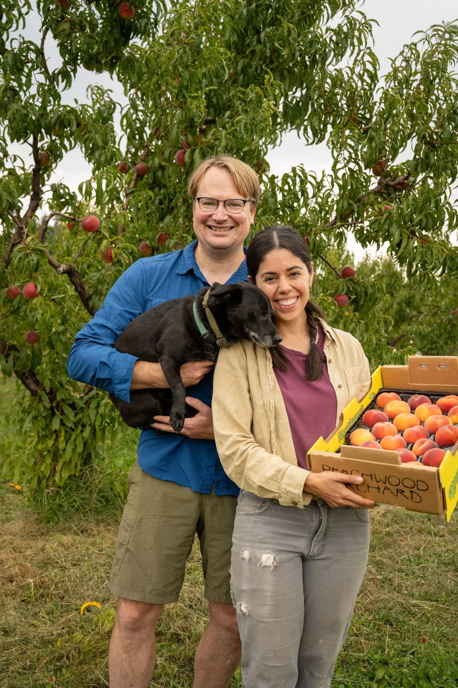 David and Alma live and work on the farm with their sweet dog Whoopie. Alma and Whoopie dog work in the orchard full-time in the summer, while Dave works in the local hospital full-time. Alma is first-generation Xicana, her passion for agriculture launched her into orcharding for the past 10 years. As a child, she watched her grandfather work in his milpa in Zacatecas, Mexico following through the fields and always asking questions– wanting to emulate him. We like to host family and friends in our house in the summer and Alma loves to cook traditional foods and share meals whenever there’s a chance. Alma is involved in social and environmental justice organizations in the community and is on the board of a food access non-profit. Typically we host between 2-4 volunteers through WWOOF and other organizations. The orchard is largely run by us, we may have support from 1-2 part time employees during the busy parts of the season and employ local contract work.
